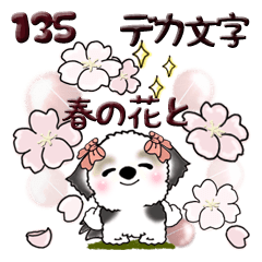 シーズー犬の春の花と一緒のスタンプです。老眼にも優しい大きめ文字です。藤花 より発売