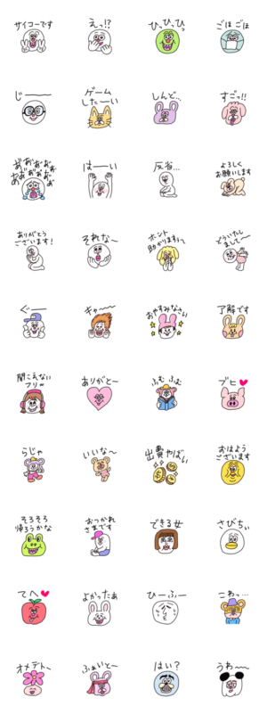 春爛漫、新しい出会いで「何そのスタンプ?」的なリアクションを引き出し、会話を盛り上げることができそうなスタンプです。ちょっとレトロでシュールなキャラいっぱい!