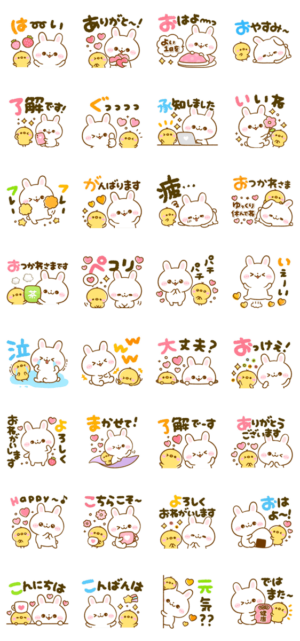 相手を思いやる心遣いの言葉をたくさん詰め込んだ暖かい春のうさぎスタンプです♡