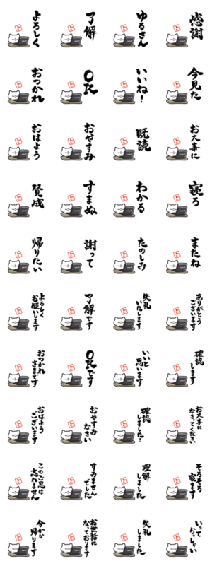 パソコンをいじるねこのスタンプです。ネコ好きな方とか勉強中仕事中作業中の方にどうぞ。シンプルな日常あいさつや敬語もあるので友達家族仕事上司先輩なんでもどうぞ。オカヤマ より発売