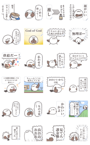 引き続き推しに生きるシマエナガさんです。感情の高ぶりが体に出るオタク向け。 現在この商品は一部のスマートフォン版LINE 10.3.0以上のトークルームでのみ使用できます。動作環境の最新情報はヘルプをご確認ください。テル より発売