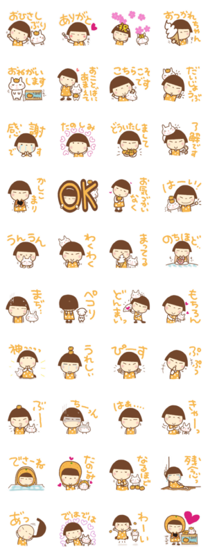 大きな文字ことちゃん みかん色ワンピース スタンプ画像一覧