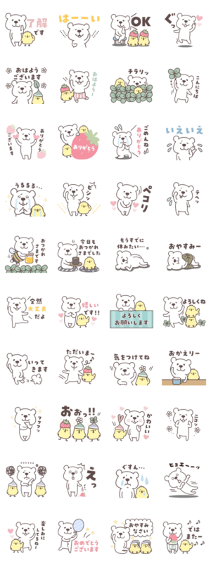 くますけの見やすいデカ文字スタンプ♡仲良しのトリさんと一緒です♪くま好きな方におすすめ♡ほんのり春の雰囲気も楽しめます!chaco より発売