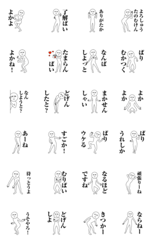 面白い真顔の動く九州・博多弁スタンプです。日常で使いやすいツッコミや、毎日使える基本的な方言など。センジュ より発売