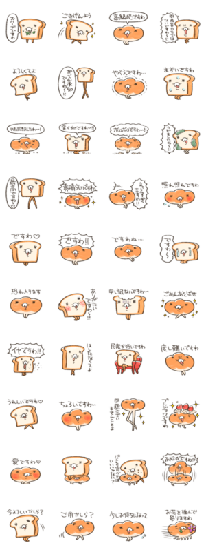 ふんわりふかふかの食パンとコッペパンが、高級な気分になってお嬢様言葉を操るスタンプです。いつもとは一味違うリッチなお味をどうぞ。シノザキ より発売