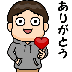 フードが可愛い灰色のパーカーを着た男の子。芋ジャージの名前スタンプのくーが作。くーが より発売
