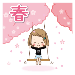 前髪短めな女の子の大人可愛い「春」の長文♡スタンプです♪