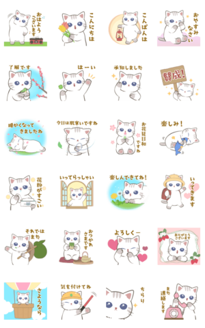 春に使いやすいネコちゃんのスタンプです。敬語多めで誰にでも送りやすい♪DECOR より発売