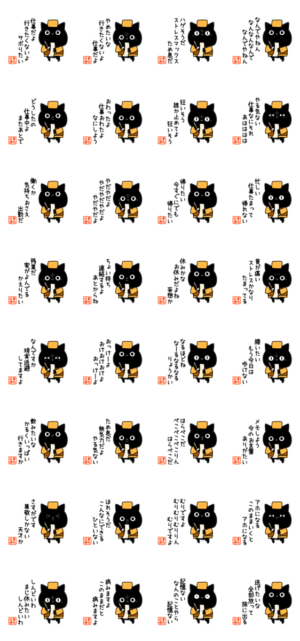 32個目です。ネコ好き集まれ!クロネコだよ!ぼく黒猫だよ!トーク画面の背景黒だと見づらくなるよ!気をつけてね!type-E より発売