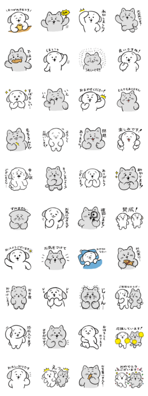 ほがらかな犬と猫の敬語スタンプですyukke より発売