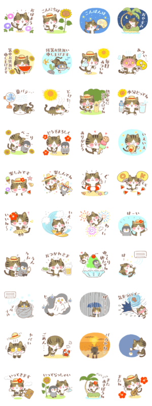 夏のキジトラ♪夏のあいさつ&暑中見舞い スタンプ画像一覧