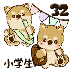 柴犬 ちゃちゃ丸たち 32『小学生&運動会』 スタンプ画像一覧