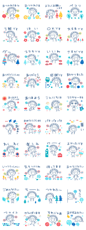 「おはよう」「おつかれさま」から「大丈夫です」まで。爽やかな北欧風デザインで、メッセージを楽しく届けよう。家族、学校、お仕事でも。Mami / エストループ より発売