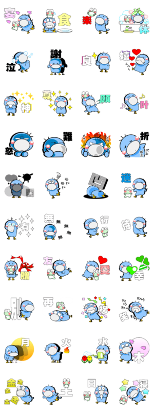楽しくて毎日使いたくなる小さなハシビロコウのコウちゃんの漢字一文字だけの完結スタンプです。ohausa より発売