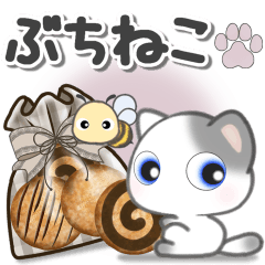 青い瞳のぶちねこが楽しく飛び出すポップアップスタンプです。ぽてこ より発売