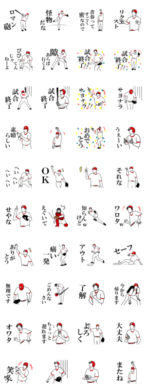 全12色!! ≪赤/白≫ユニで野球応援!! スタンプ情報
