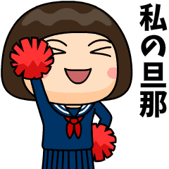 芋ジャージ姿の私の旦那が好きな女の子のスタンプです。中学生、セーラー服、制服、カップル、アベック、パートナー、恋愛、片想い、恋人、夫婦。