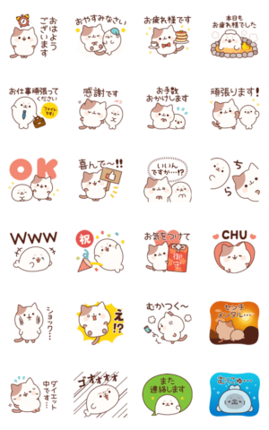 友達や家族、恋人に!ブチ猫とゴマフアザラシの赤ちゃんの可愛い飛び出るスタンプです♪DECOR より発売
