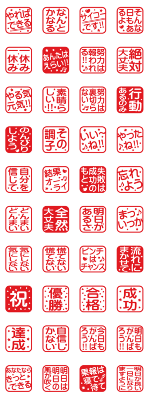 ポジティブで前向きな言葉を厳選!大きな文字(でか文字)で見やすいハンコ(判子)風スタンプ!大切な人を応援・励ましたい時にお勧め!一つあれば便利な定番セットです。
