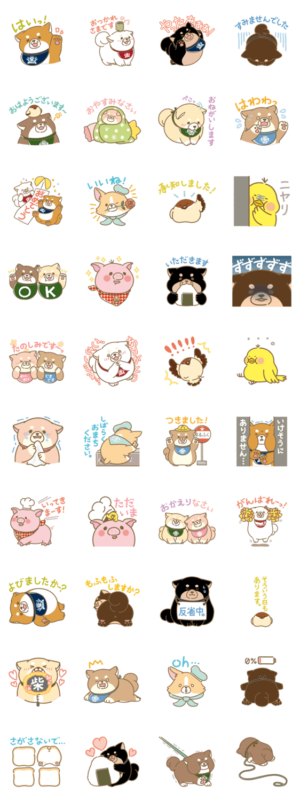 「忠犬もちしば」のスタンプ第3弾が登場です! トーク画面でも おかか たちが大活躍!? 柴犬好きにもおススメです♪株式会社エスケイジャパン より発売