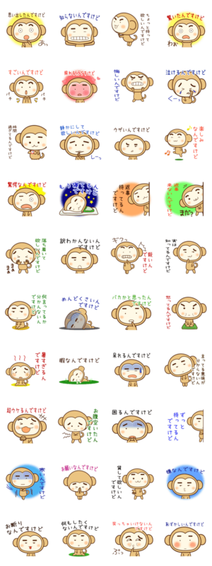 太眉のお猿さん。とぼけてみたり笑いをとったり楽しく使えるスタンプです。takopon より発売