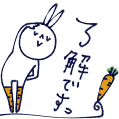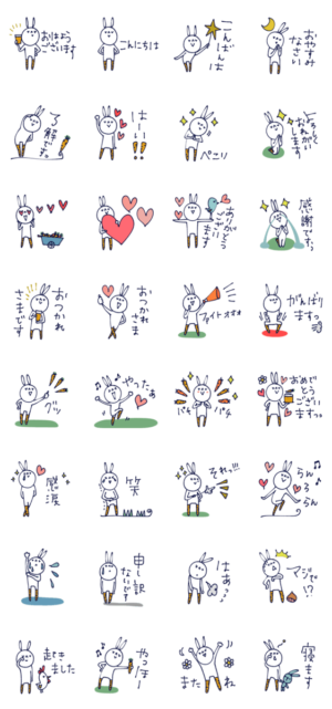 ニンジン靴下を履いたvうさぎのスタンプです♪おはよう/おやすみ/ありがとう/了解/おつかれ/よろしく/などなどベーシックなセットです。motto より発売