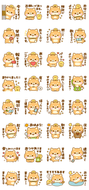 会話の始まりと終わりに使える♡小さな柴犬♡豆柴日和の役立つ言葉満載のスタンプセットです。ぴよたぬき♡ より発売