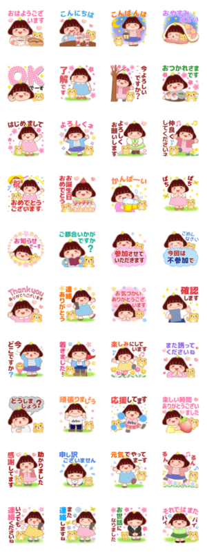 日常の挨拶、優しい気づかいに… 友達や家族、大切な方へ…ちょっと太めの女の子「でぶりん」がおくる春に使えるスタンプです。めぐみん より発売