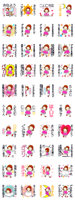 髪の毛がはねてるいつも元気な女の子はね娘ちゃんの今回は、毎日使える大人の幸運女神女子スタンプです。よろしくお願いします!