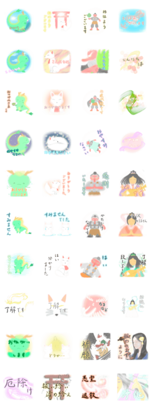 ⛩神社⛩挨拶 龍、お稲荷、天狗、弁財天 スタンプ画像一覧