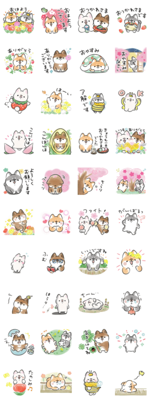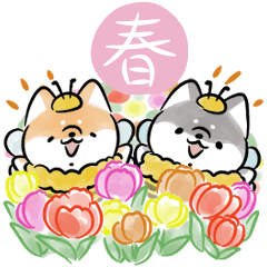 挨拶やリアクションに使える春の柴犬スタンプですmimori より発売