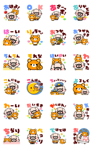 おやじ君と可愛いぬいぐるみの気楽クマの飛びだすスタンプ。でか文字で見やすい定番の挨拶。カラフル文字が可愛く動くよ♪友達、ママ友、家族、日常会話、幅広く使えます!