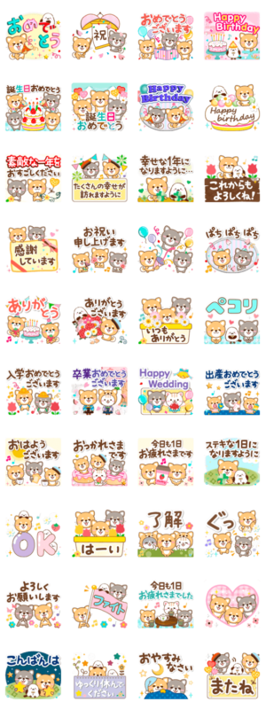 ミニの大人のための柴犬が沢山いるお祝いスタンプです。華やかさを演出するために3Dを少しいれてるので、探してみてください。多種多様な言葉や表現で使いやすくしました