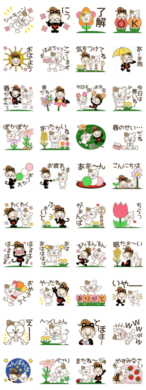 おちゃめと茶々丸の春のご挨拶♡日常会話編 スタンプ情報