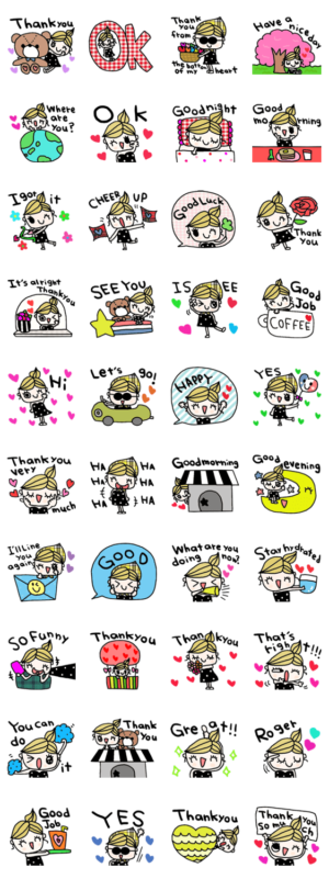 シンプルな日常会話スタンプです。英語スタンプnenerin より発売