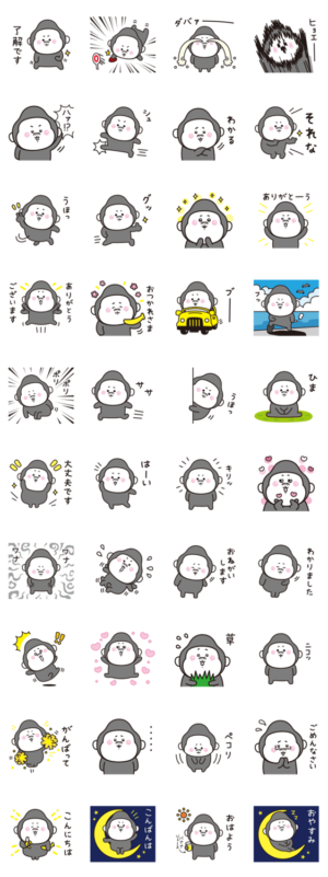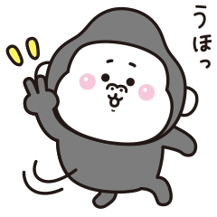 小さい豆ゴリラのスタンプ。かわいいけどちょっとウザい!日常でよく使えるよ。マッスル返信、みんなの変顔、しろめ爆弾、微妙にうざいブラウンのスタンプ69作スタンプ69 より発売