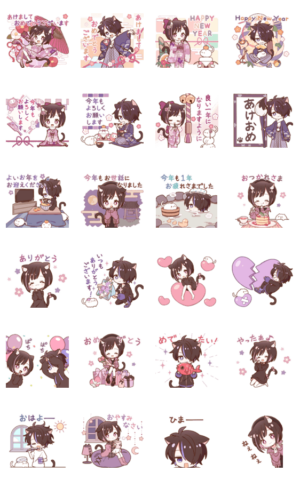 【再販】飛び出す!くろねこ女子&男子お正月 スタンプ情報