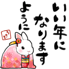 着物を着た女の子ウサギが2023年を祝うスタンプです。お正月の年賀状替わりにどうぞ。シンプルな新年あいさつや敬語もあるので友達家族仕事上司先輩なんでもどうぞ。