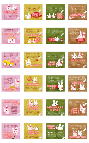 年末年始帰省に関する話題に。好きウサギ応援隊シリーズメッセージスタンプ。2023年(令和5年)の干支はうさぎ年(卯年)実家や義実家に帰省がつらい人向け愚痴にも対応。 現在この商品は一部のスマートフォン版LINE 10.3.0以上のトークルームでのみ使用できます。動作環境の最新情報はヘルプをご確認ください。うどんみかん より発売