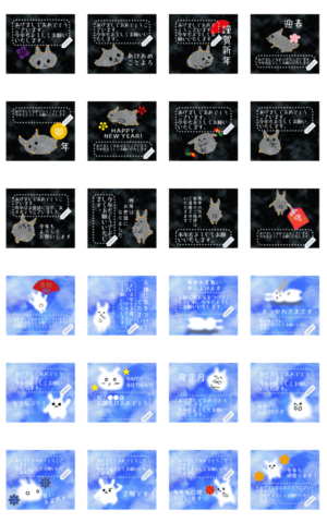 ゆるいシンプルなうさぎのふにゃらびシリーズ、空の背景メッセージスタンプ。2023年(令和5年)の干支はうさぎ年(卯年) 現在この商品は一部のスマートフォン版LINE 10.3.0以上のトークルームでのみ使用できます。動作環境の最新情報はヘルプをご確認ください。うどんみかん より発売