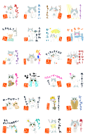 沖縄方言を喋るネコのスタンプです。よちゃぼう より発売