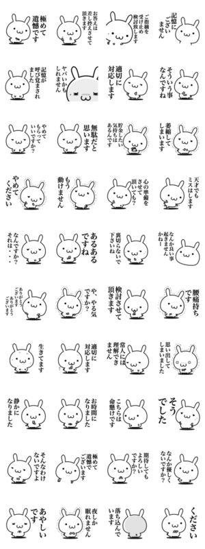 敬語で少し臆病なウサギのスタンプです。少し政治家が言いそうなことも混ざっています。