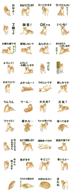 柴犬のリアル寄り画像に、毎日使う言葉が大きな文字で入っています。男性や年配の方もどうぞ。つのっち より発売