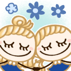 「丁寧な暮らし系女子」シリーズ♪青色が爽やかな、しっかり者のお姉さんスタンプです♡小さな幸せ/感謝あさごぱん より発売