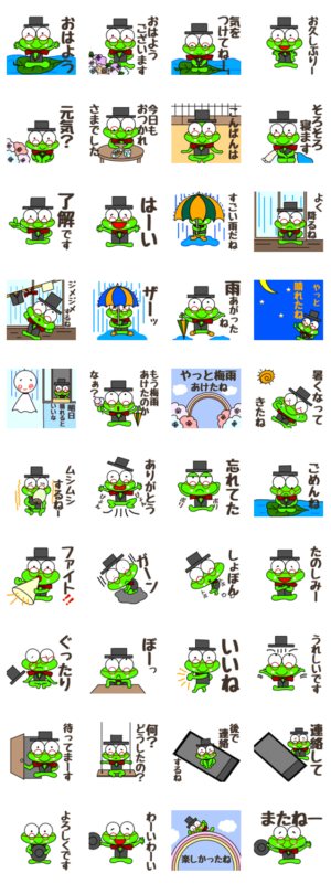 シルクハットをかぶり蝶ネクタイのハイカラカエルさん。毎日使える言葉です。たくさん使ってくださいねゆずっ子 より発売