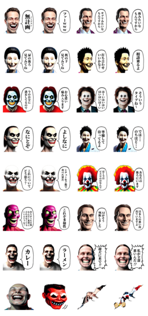 【ネタ/煽り/吹き出し/面白い/ホラー/日常/敬語/丁寧/ビジネス/変人/ピエロ/恐怖/外国人/親父ギャグ/変態/シュール/おじさん/かっこいい/イケメン/子供/その他】ヤバいスタンプ屋さん より発売