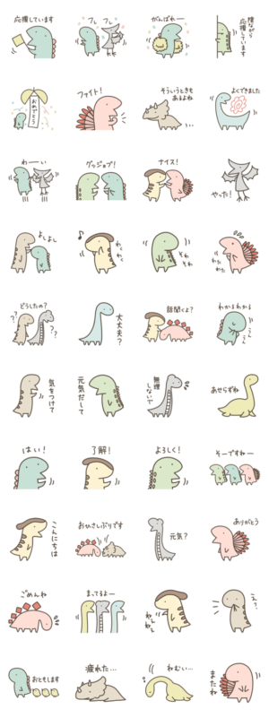 ゆるい恐竜たちが頑張る人を応援します。【過去に販売していたスタンプのリメイク版です】K.Sasara より発売