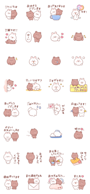 LINE公式キャラクターブラウンとコニーのスタンプです!大人可愛い使いやすい内容になっています。おつかれさま/お大事に/いつもありがとう/少々お待ちください/作:さあや ※BROWN & FRIENDS をみんなでつくろう!キャンペーン参加スタンプですさあや より発売