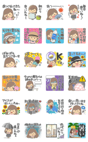 梅雨・夏にピッタリ⭐︎可愛いおばあちゃんのスタンプです♫日焼け・虫よけ・熱中症・風邪・水分補給など大切な人への注意喚起も。