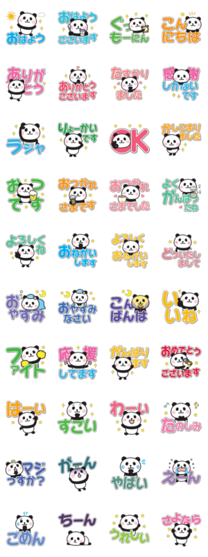 毎日使えるかわいいぱんだのでか文字あいさつスタンプです。おはようからおやすみまで♡新生活に♪家族友達はもちろん先輩、ママ友、役員PTAにもぜひ使って下さい♪パン より発売